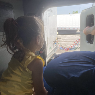 Maeve got to tour the inside of a semi truck