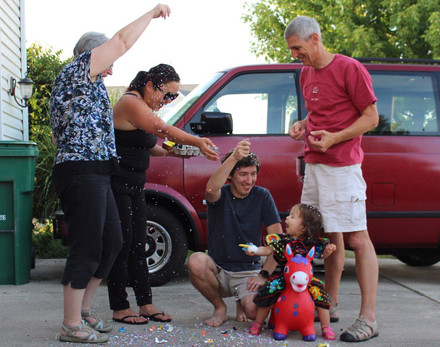 So naturally, Richard bought Maeve all the Fiesta themed items Lacey could appropriately carry through the airport and we had our own little mini Fiesta at home!